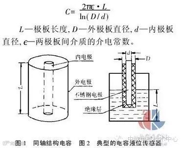 用过原理图和机构图可以看出,电容式液位传感器一般是利用电极与金属容器外壳之间形成的电容变化,变送后输出4-20毫安或者其他符合要求的电信号形式。对于外壳绝缘的容器电极形式如下图FLASH动画右侧。