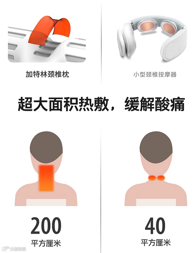 ▲别的加热颈椎可能就加热脖子左右两个点,