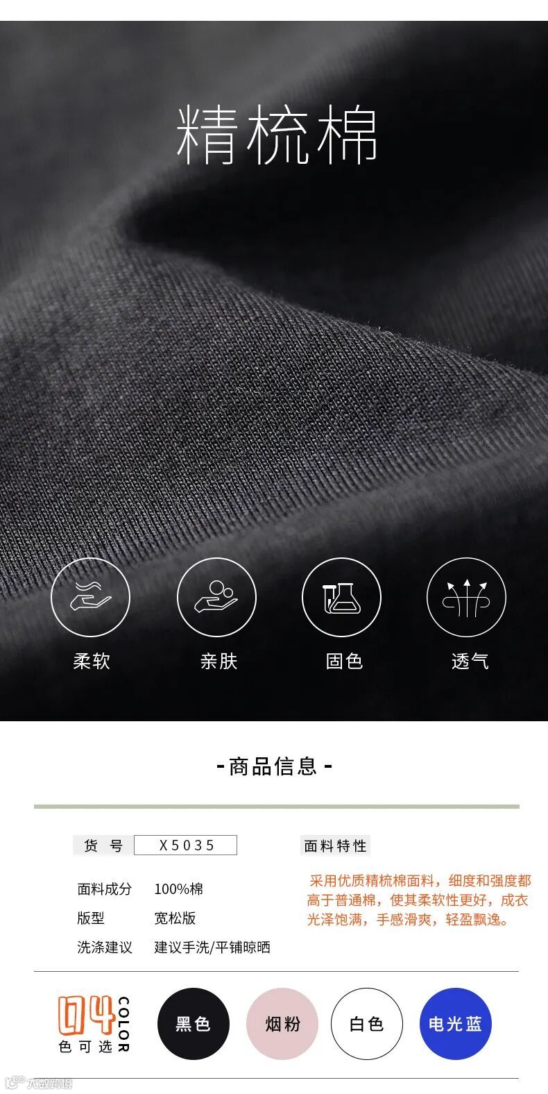 原料采用来自美国的100%精梳棉