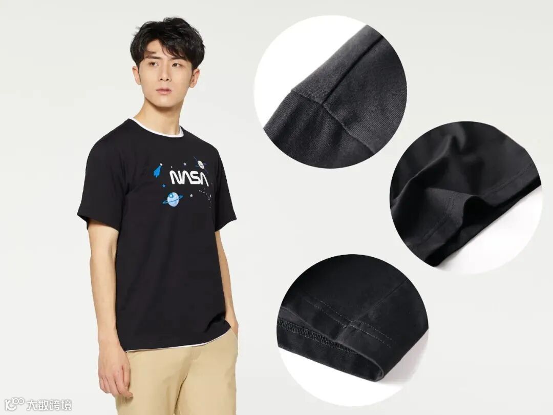 T恤的接缝处走线均匀,肩部衔接自然