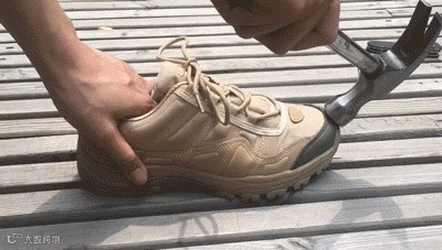 ▲鞋内放置尖锐的十字改锥,大力敲击!
