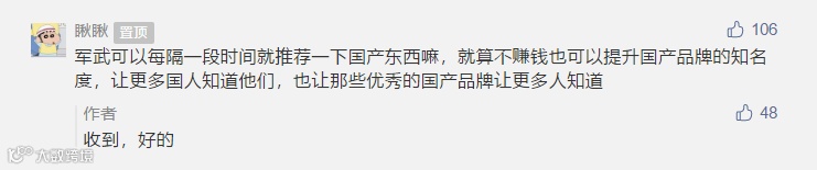 ▲也有朋友留言让我们多推荐国货