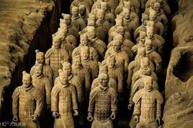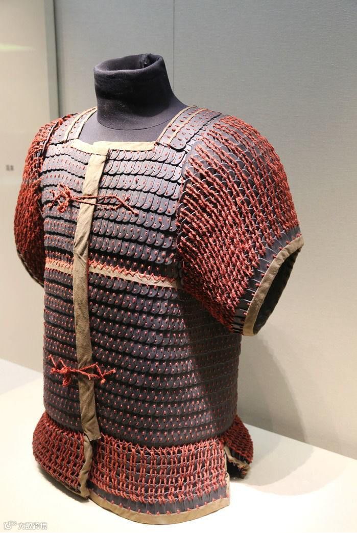 从西周、春秋、战国一直到秦、西汉,这近千年的时间里,中国铠甲一直是以皮甲为主。制甲的原料,以牛皮为主,也会有诸如象皮、鳄鱼皮、犀牛皮之类的比较少见的动物皮。但是,就在皮甲发展到顶峰的同时,中国的兵器发展也取得了飞跃。战国时期,中国冶铁匠们发明了鼓风炉,冶铁技术迅速提高,铁器的质量和产量都有了飞跃,铁制兵器开始取代昂贵的青铜兵器,逐渐成为主流的兵器。在强大的铁制兵器面前,原先的皮甲防护力已经显得捉襟见肘了,于是,新型的铁铠甲开始登上了历史的舞台。从现有的考古情况看,大约在战国时期,已经开始出现了铁制的铠甲。到了西汉时期,随着冶铁规模的扩大和冶铁技术的提高,铁制铠甲终于取代了皮甲的主宰地位,成为了军队中铠甲的主流,皮甲退居次要地位。
