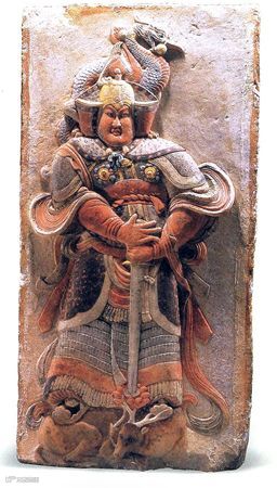 有意思的是,在唐代的壁画和雕塑中,明光铠除了少量出现在精锐军队和高级将领身上,大部分时候,明光铠居然是在各类宗教神话类题材中出现。在唐代的佛教造像中,有相当多的身着明光铠的形象,他们大多是护法天王、天庭神将之类的角色。这其中最有名的角色,就是各种佛教寺庙总不会缺少的四大天王。他们身穿明光铠的形象是如此深入人心,以致于在宋代明光铠消亡以后,工匠们在塑造四大天王像时,还是会忠实地照着明光铠的式样塑造天王们的身躯。直至今天,我们所看到的的各类四大天王塑像,他们依然穿着唐代式样的明光铠。明光铠本身已经从历史中消失了,但却通过这样一种方式,永远地融入了中国文化之中!