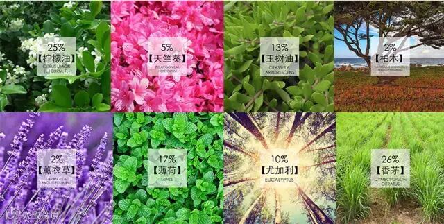 从天竺葵、柏木、薄荷、薰衣草等