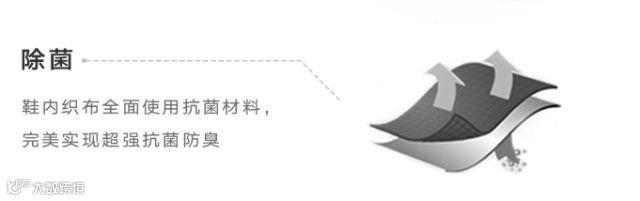 贴服脚身第三层鞋内织布全面使用抗菌材料,完美实现超强抗菌防臭
