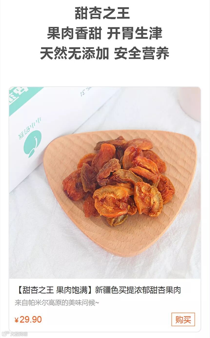 来自昆仑山东北麓的色买提甜杏,皮薄透光,轻轻一咬 将甜杏肉天然烘干成杏干, 最大程度保留了甜杏的原汁原味,非常香甜。果肉软硬适中,果香浓郁,和小时候吃到的味道一模一样。