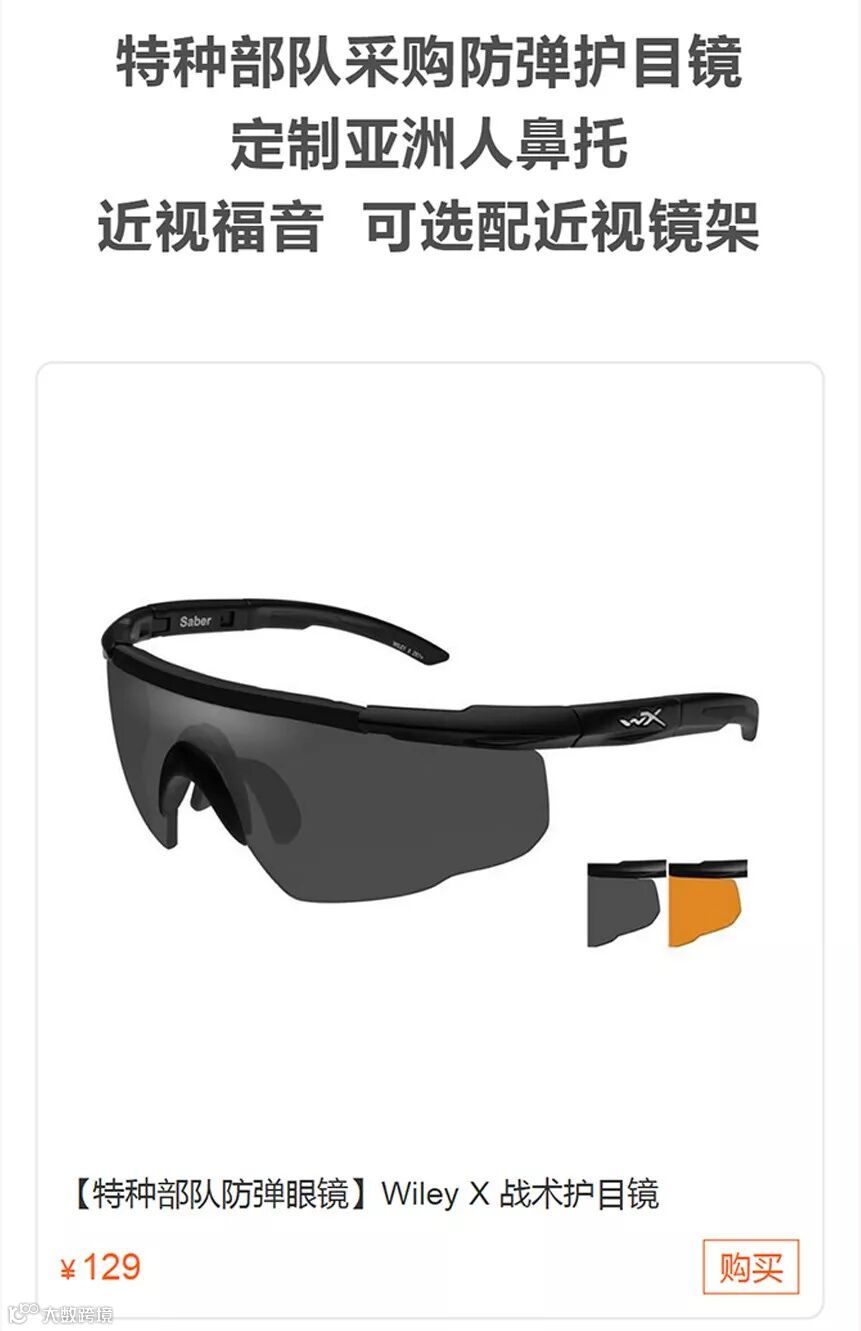 Wiley X 战术护目镜是美特种部队采购品牌,其防护能力比陆军版更优秀,而且还可以搭配配近视镜架,简直就是近视用户的福音。