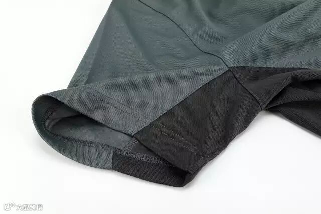 袖底采用了撞色拼接工艺,让衣服看起来更加时尚,同时也防止汗水浸湿腋下衣物的尴尬,深色的面料也凸显出了男人那稳重的一面。
