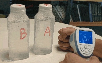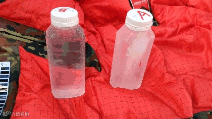 我们找来两个耐高温塑料瓶,两瓶灌入热水