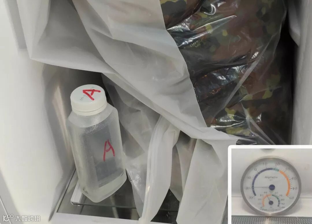 将大衣(内含B瓶)和A瓶放入冰箱冷冻室