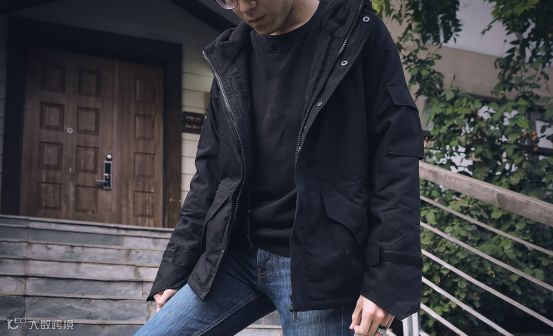 可以说冲锋衣所有的设计都在为保暖性能倾尽全力,拉链按扣部分使用了双层设计,阻挡冷风侵入的性能拥有质的飞跃,让他更为保暖。按扣外还有一个固定对讲机、MP3等设备的布条,可以非常方便安装、卸下。