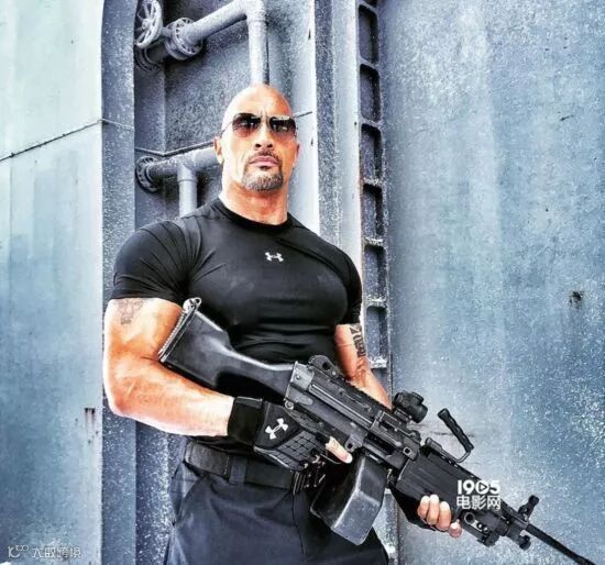 巨石强森硕大的身材,健壮的肌肉配上飞行墨镜更加的高大威猛。