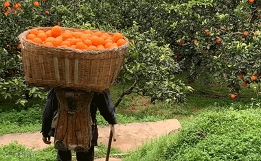 每天早上天蒙蒙亮就采摘,地势陡峭,果农一个个小心地摘下橙子后,背着120多斤的背篓一筐筐运下山,还要坐2次轮船跨越长江水,才能走出大山到达大家手中。