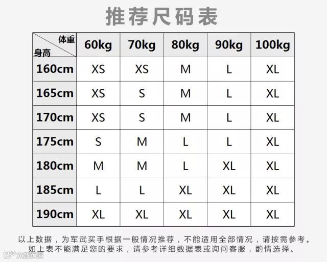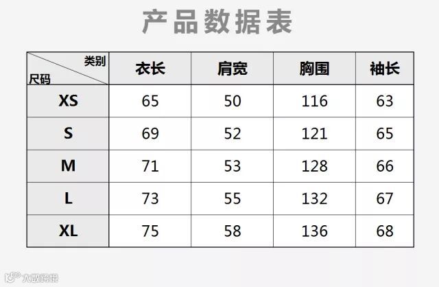尺码: XS S M L XL
