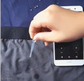 市场上一些内裤品牌,为了迎合消费者的心理(手感越好,质量越好),在面料后整理时,明明是较差的原材料,通过加大量的硅油,可以让面料手感细滑,却不透气。水滴入后,呈荷叶状,吸湿透气性差。