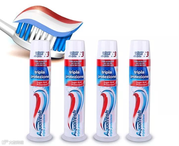 Aquafresh牙膏挤出的膏体有三种颜色,分别发挥不同的功效。