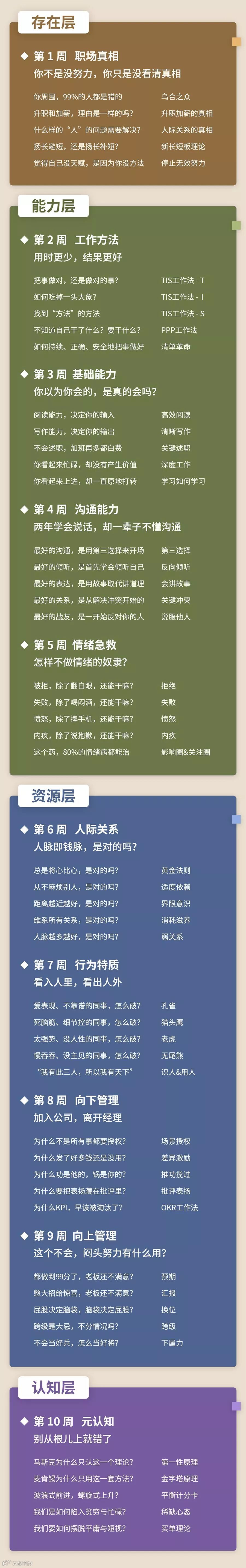 军武学堂联合老路,重磅推出《用得上的商学课》第二季职业发展篇,我们不教职场上那些耍聪明的小技巧,我们也不教宫斗倾轧的厚黑权术。我们将从存在、能力、资源、认知四个层面,为你一层一层拨开职场的真相,目的就是一个,让你看得清自己的职业发展之路。看清之后呢?从容选择,不再无效努力。