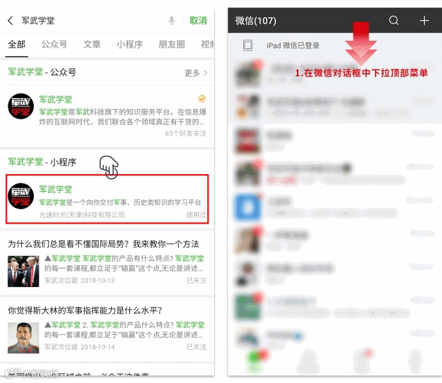 方式一、微信搜索军武学堂小程序点击“已购”回听,再次回听时也可以在微信页面下拉一下找到“军武学堂”小程序入口。可以实现后台播放哦!