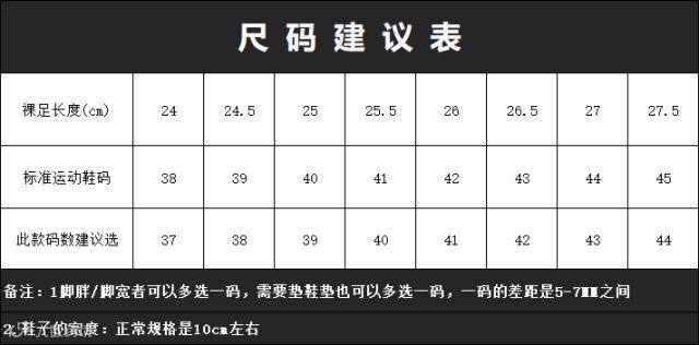 此款比运动鞋大一码,日常运动鞋穿43码,本款请选择42码