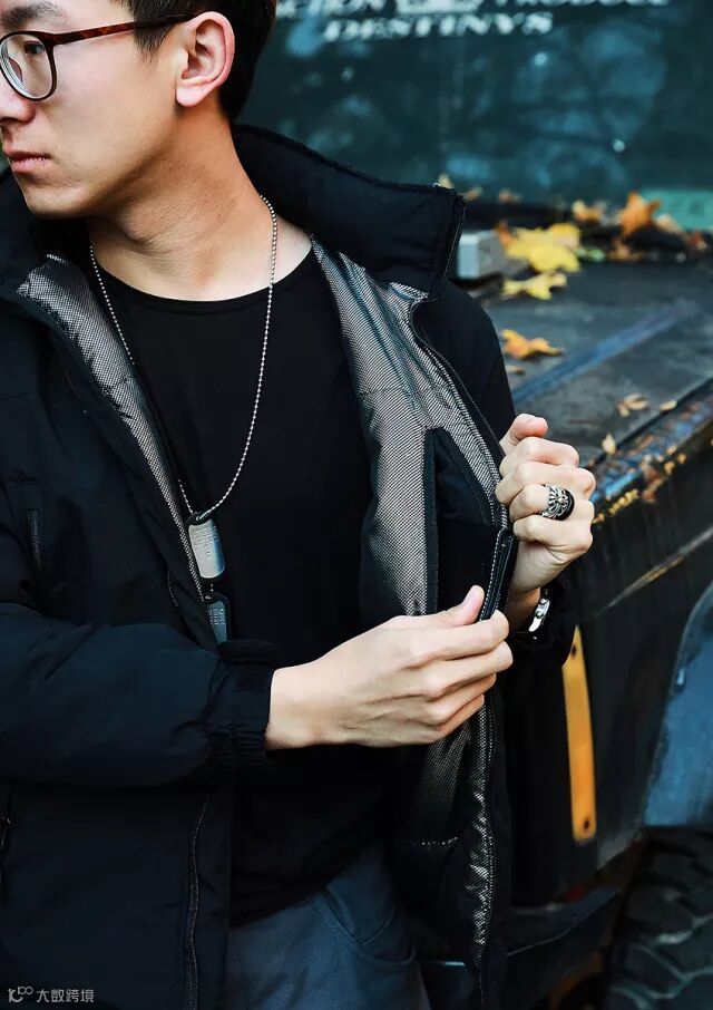 兜帽可以收纳进衣领里,双拉链闭合。立领贴合颈部,防风又保暖,而且更加帅气!