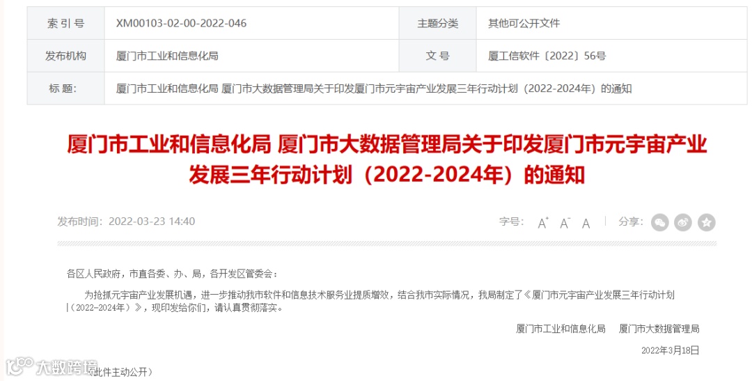 2022年3月23日,厦门市印发出台《厦门市元宇宙产业发展三年计划(2022-2024年)》,同安工信局重点打造预制菜行业的产业集群,网易厦门数字产业中心联合厦门市同安区工信局共同打造元宇宙应用平台,厦门市预制菜产业元宇宙平台,通过新技术与场景融合,在线上1:1打造每家企业的专属展位,这将成为我市预制菜产业推广、促进企业与全国需求方对接的新平台。
