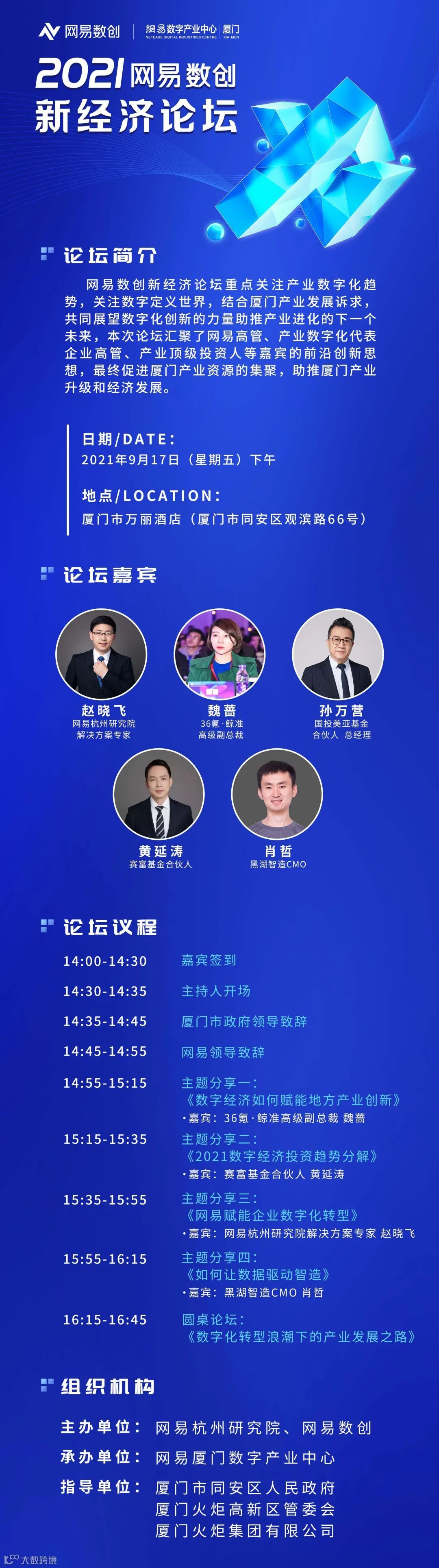 9月17日,2021网易数创新经济论坛将在厦门举行。本次论坛由厦门市同安区人民政府、厦门火炬高新区管委会、厦门火炬集团支持,网易杭州研究院主办,网易数创、网易厦门数字产业中心承办。届时网易高管、产业数字化代表企业高管、产业投资人、数字经济专家将齐聚一堂,围绕数字创新发展和趋势进行分享和交流,共同探讨数字化创新发展新趋势,加快推动厦门“数字产业化、产业数字化、创新性”,构建厦门数字经济创新发展新生态。