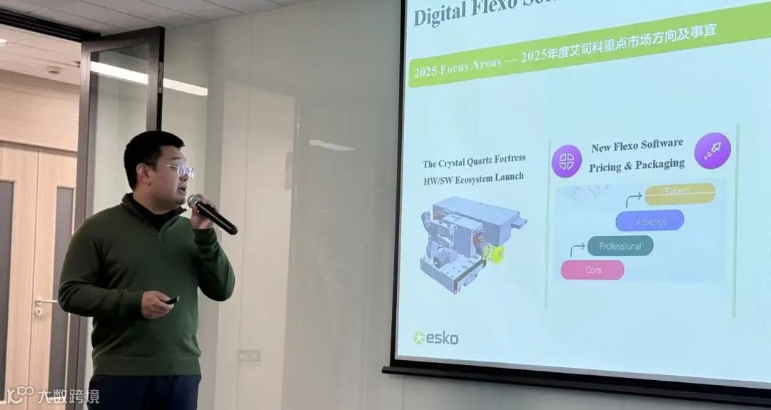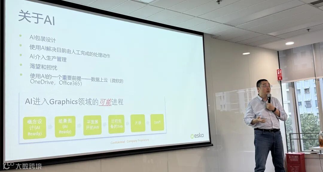 随后,Esko 软件项目经理吴强带领大家进入到Esko 软件新生态的主题分享中来。他针对2025 Esko 包装行业趋势白皮书强调了包装可持续性的重要性,以及Esko的软件在包装可持续性中的作用。同时他对于云服务的安全性,以及AI未来在包装行业中的运用做了预测。