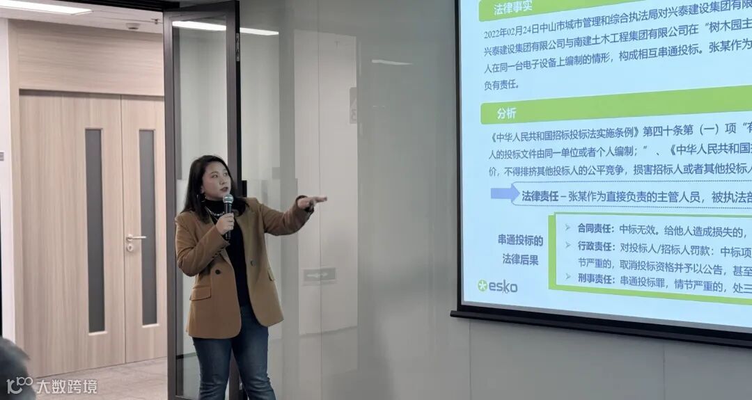 随后,Esko 华东区销售代表兼Esko 合规大使胥曼琳女士针对业务发展过程中的招投标及其他限制市场竞争的行为进行了案例分析。根据真实案例,和与会的合作伙伴代表共同讨论,加强合规意识,促进业务健康持续发展。