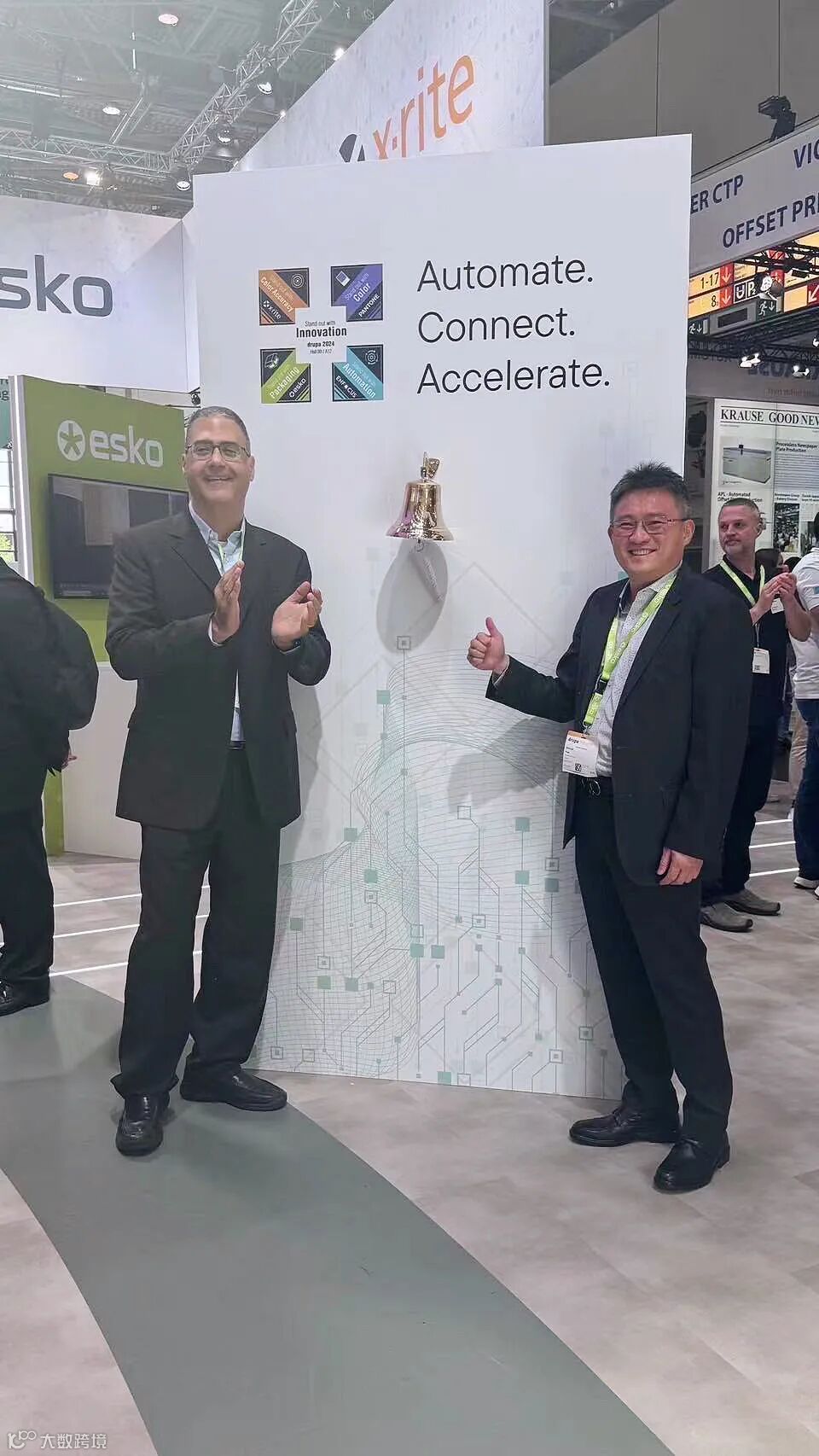 2024年6月,瑞兴工业股份有限公司总经理潘威志在德鲁巴杜塞尔多夫展馆Esko展台上敲钟,宣布成为Esko 大中华区首家使用Automation Engine SaaS 的客户。