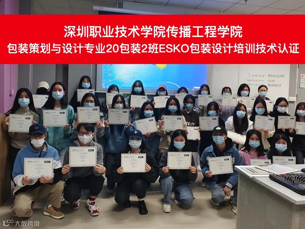 2022年12月5日,深圳职业技术学院传播工程学院包装策划与设计专业20包装1班与2班共计57名学生收到了来自ESKO的包装设计培训技术认证证书。