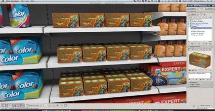 Studio提供海量包装造型库,专业的设计软件帮助您轻松呈现展架、盒子、圆形容器、软包装袋和收缩套等一系列设计的3D效果。3D工作室还将帮您搭建虚拟现实的场景,将包装好的产品快速装满整个货架。