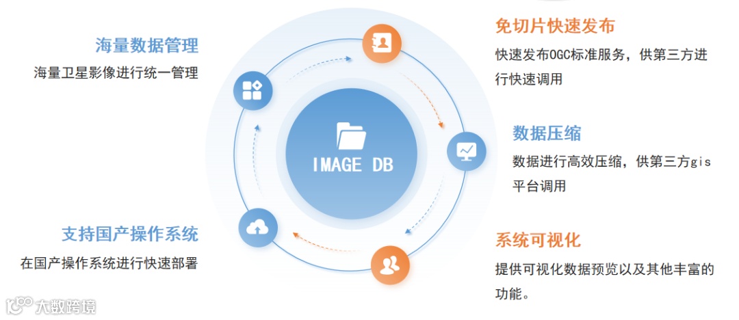 IMAGE DB采用全新的理论和方法,以图源科技自主研发的“空间网格引擎(SGE)”技术为核心,整合多项 IT 前沿技术,提供了全面的、一体化的遥感数据管理分发服务,实现遥感影像数据的存储、 管理、整合、计算、分析、显示等业务全在线模式。将海量时空遥感影像数据存储到管理服务系统后,无需额外处理(切瓦片、压缩和格式转换),即可支持多平台应用程序对任意区域数据的无缝浏览和快速数据获取,简化和加速遥感数据存储、处理和应用的各个环节。