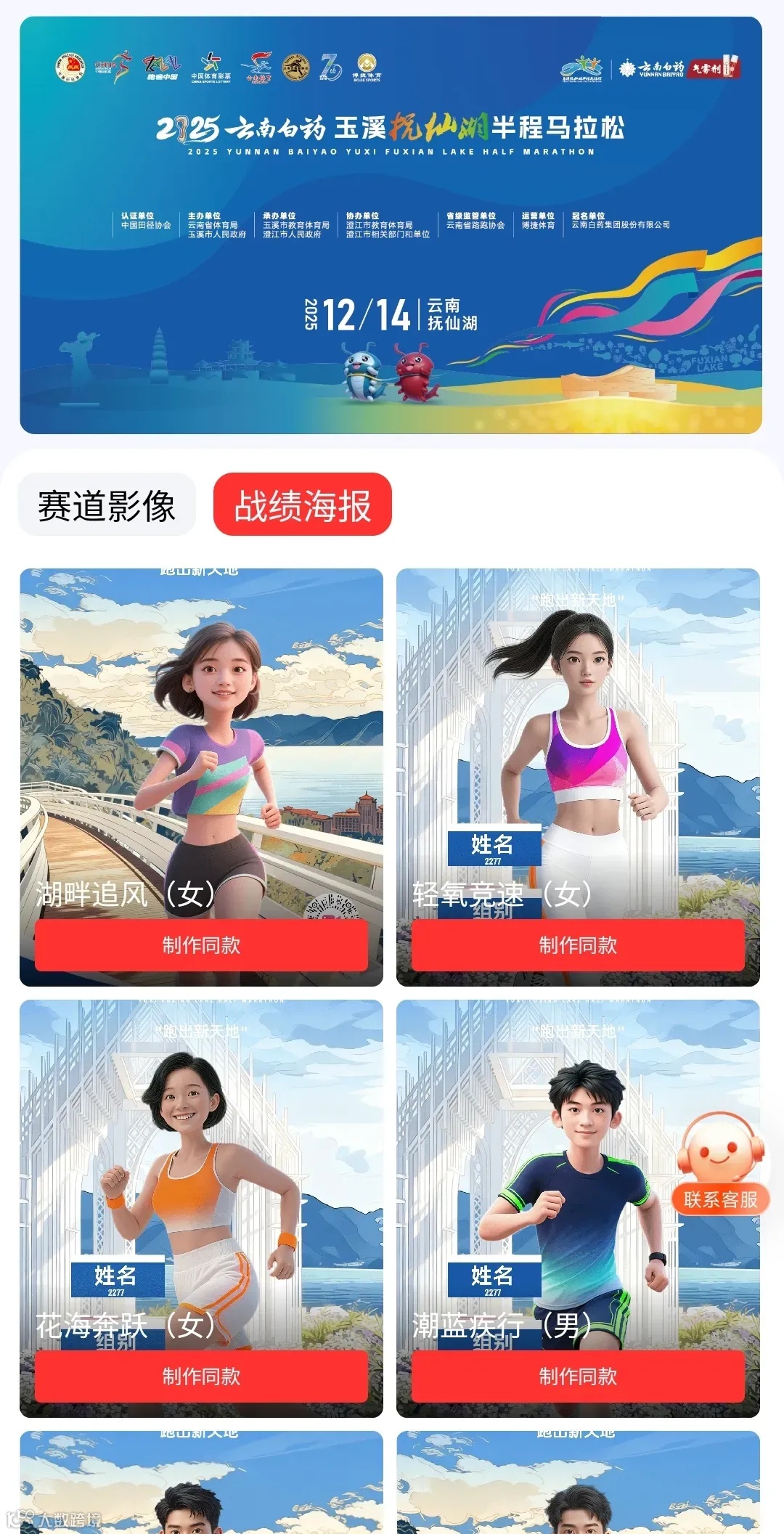 纪录版:一场 “湖山回溯跑”—— 从起点热身轻晃,到中途穿椰林过古滇的切换,再到最后 1km 冲刺,配速曲线藏着湖风节奏,地标标注裹着古滇韵味。