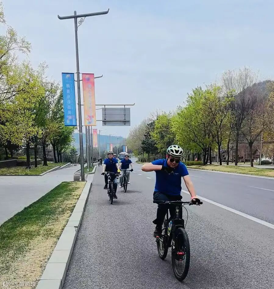 13公里雁栖湖环湖骑行挑战正式开始!有人一马当先,享受速度与激情;有人稳扎稳打,欣赏沿途美景;还有人化身“摄影师”,抓拍队友们的飒爽英姿。骑行终点,全员在雁栖湖标志性景点合影留念,记录下这充满活力的瞬间!