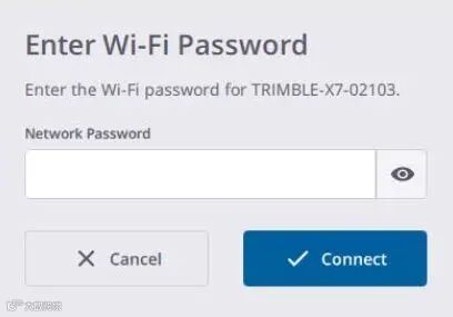 6. 如果您通过其它终端连接仪器,Trimble Perspective软件会提示您输入保存在仪器上的Wi-Fi密码。