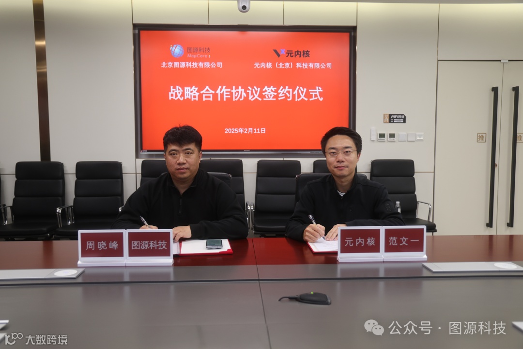2025年2月11日,北京图源科技有限公司(简称“图源科技”)与元内核(北京)科技有限公司(简称“元内核”)正式签署战略合作协议。双方围绕各自在空间遥感数据处理、管理、应用等服务和数字化生产基础架构领域的核心优势,展开深度合作,共同推动遥感大数据与智能化生产技术的融合创新,为客户提供更高效、更智能的解决方案。