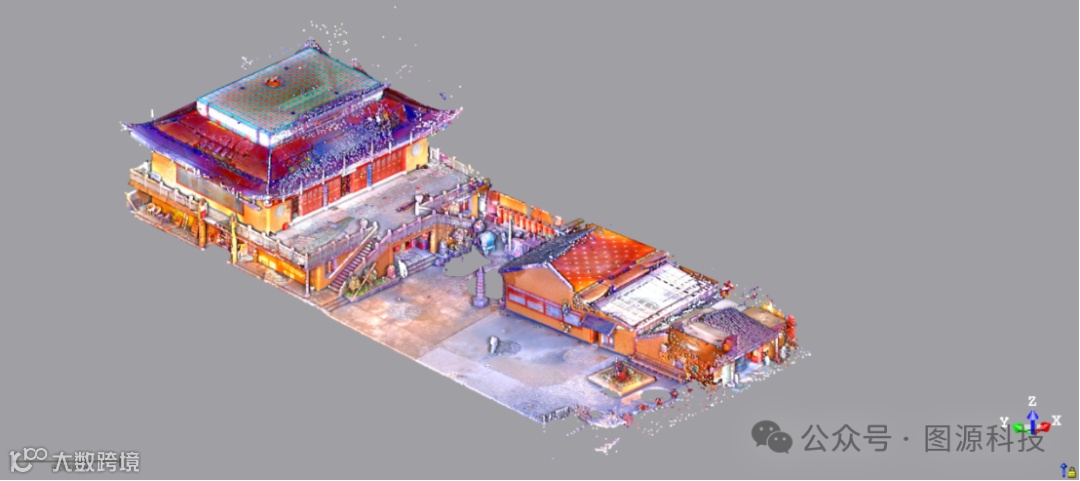 本项目受甲方邀请,完成古建筑数字化保护,尽可能的还原该建筑的实际情况。本次使用Trimble X7扫描仪,该仪器可以连续、自动、快速采集建筑物表面的颜色属性,快速获取复杂结构的三维模型和纹理映射,为制作该建筑的三维实景模型提供基础。