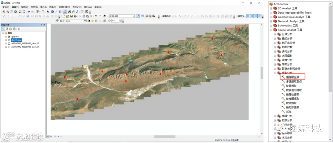 (2)平面采用1m DOM参考影像数据,导入影像范围,下载公开免费的参考DOM影像。