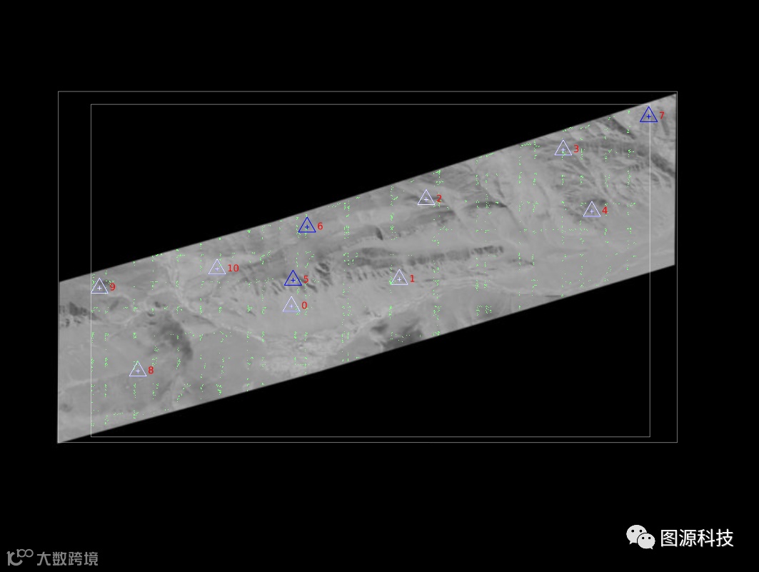 通过参考DOM人工采集分布均匀的控制点平面坐标,通过DEM赋值控制点高程坐标。