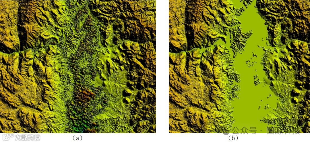 图7水域处理前后效果对比(图(a)为处理前效果,图(b)为处理后效果)