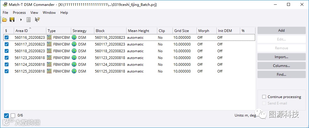 打开Inpho DSM\DTM生产模块(Match-T DSM)添加或加载划分好的区块并设置相应匹配策略。