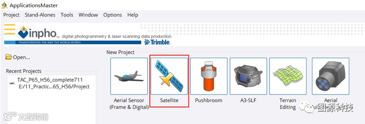 (1)打开ApplicationsMaster模块,选择Satellite卫星数据处理选项并打开。