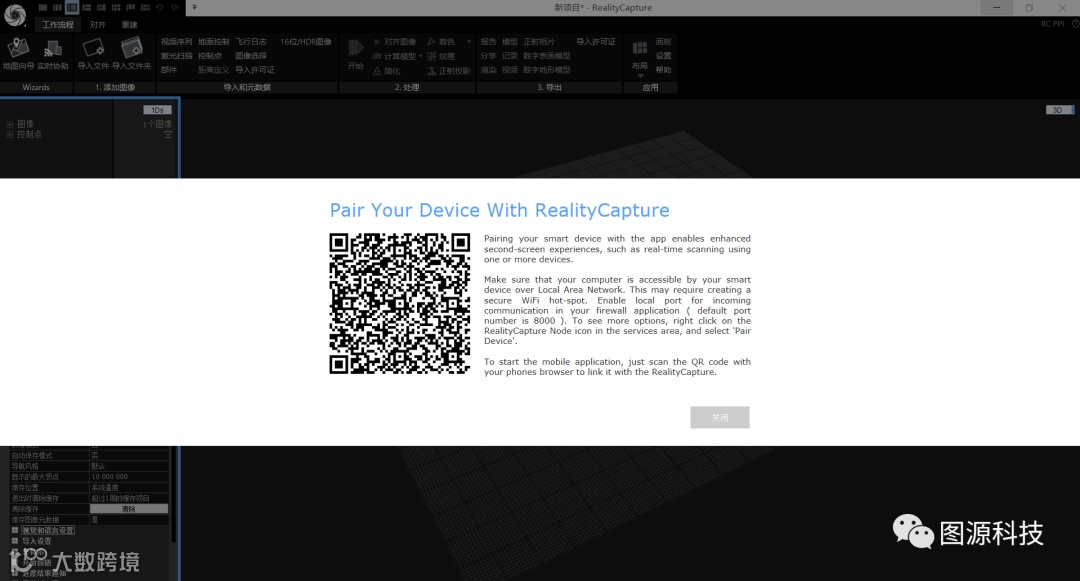 要了解应用这个全新功能,请单击应用程序功能区中工作流部分的实时助手功能。扫描软件中的二维码,用户就可以与RealityCapture进行配对,使用手机进行数据采集。此功能目前仅限于局域网中使用。这就意味着,用户的手机和电脑必须连接在同一个WIFI网络。此功能仅适用于企业级许可和带有维护服务的企业许可。