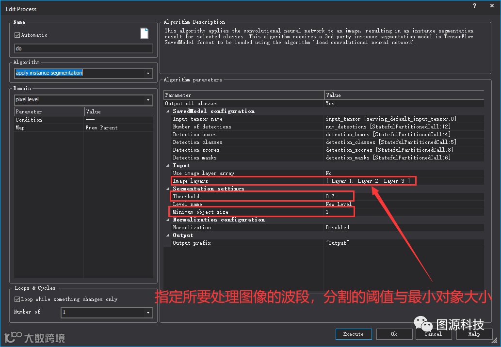 如何使用 Trimble eCognition 软件中的“应用实例分割(Apply Instance Segmentation)”算法来应用外部实例分割模型(TensorFlow SavedModel 格式与掩膜层输出)? 您仅需要两步操作: