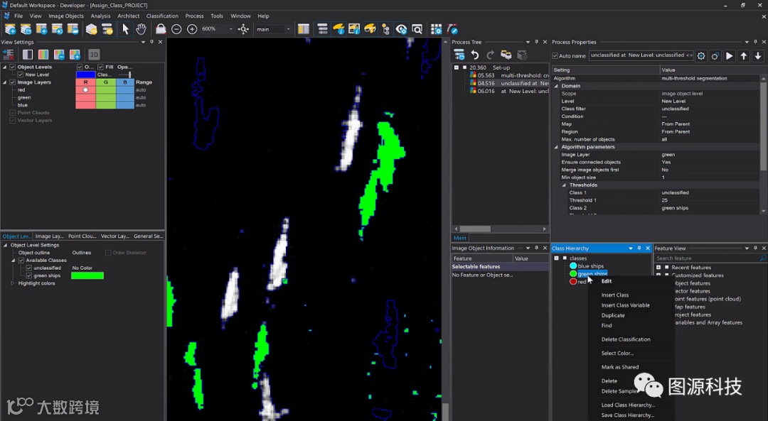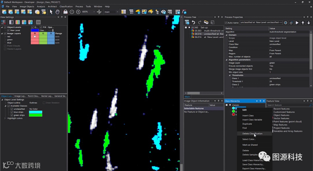 在“蓝色船只”分类结果上右击/ Delete Classification,删除后效果如下: