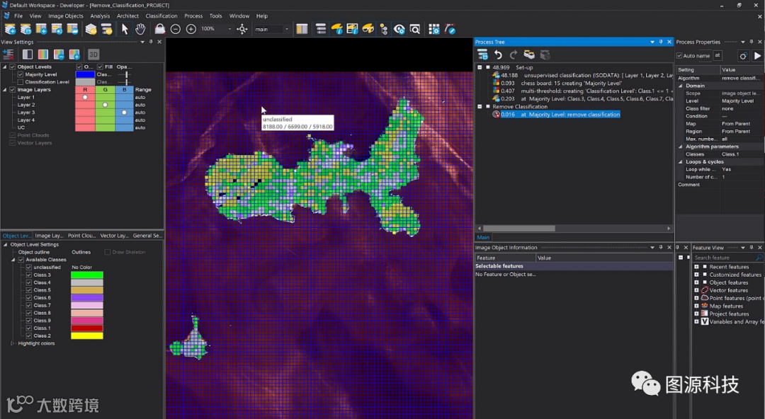 为了快速获取不包含分类结果的影像对象边界,可通过以下两种方式对影像对象分类结果进行移除。