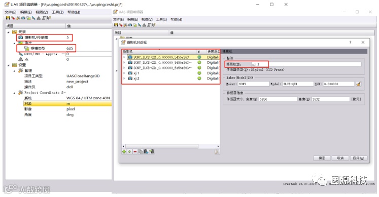 打开摄影机/传感器,分别对五个相机的名称重新编号(软件读取相机时名称是一样的,避免后面空三提取连接点时发生错误)。