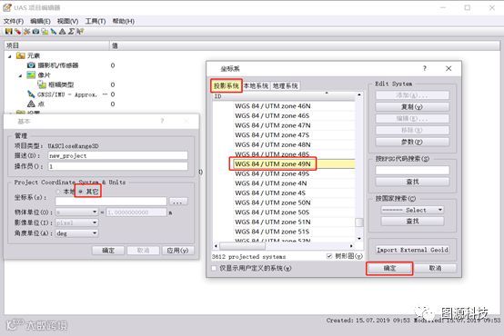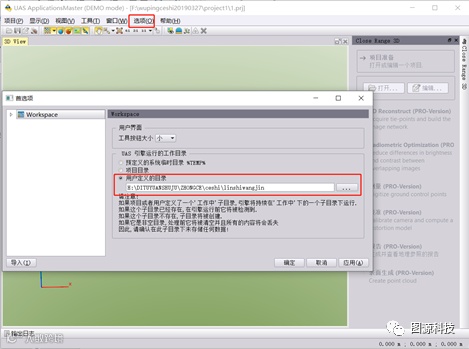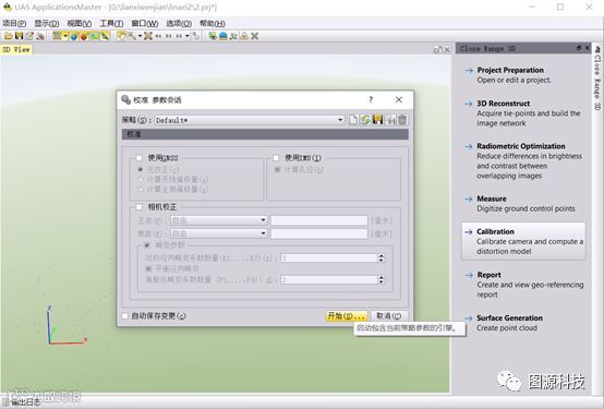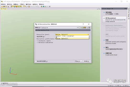 (1)打开UASMasterv9.1.4软件,选择Close Range 3D,设置工程坐标系统。
