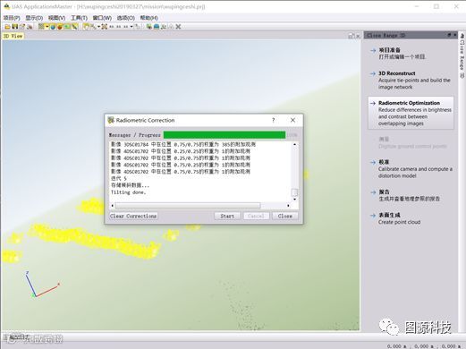 为了更好的创建3D模型,需进行辐射校正来减少了重叠影像间亮度和对比度的差异。